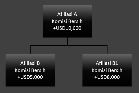 | Afiliasi A Komisi + (sub-afiliasi B + B1 total komisi) * 5% |